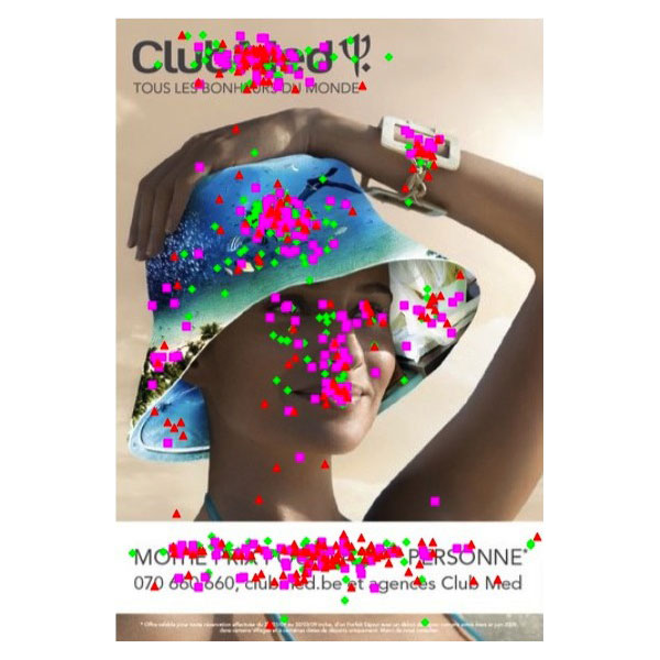 Qualitative evaluation of advertisements using clicks on the visual zones that attract the most attention from the respondents.